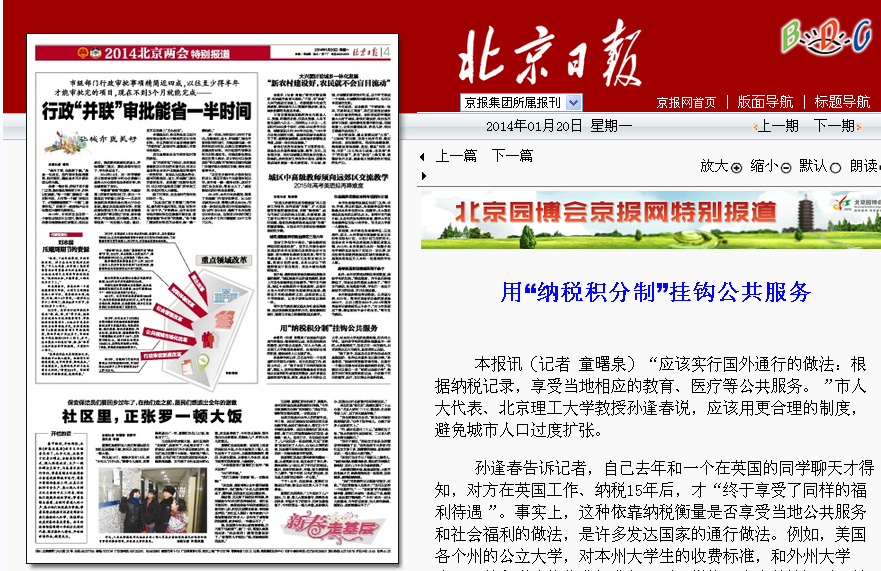 “除了房子,其實在北京的生活成本還是很低的,各種公共服務也比較完善。”孫逢春說,“但城市的資源畢竟有限,應該有一個做出貢獻與享受待遇掛鉤的機制。”他建議可以建立一項“納稅記錄積分制”,根據不同時間長度的納稅記錄,分別給予不同的教育、醫療、文化等公共服務待遇。