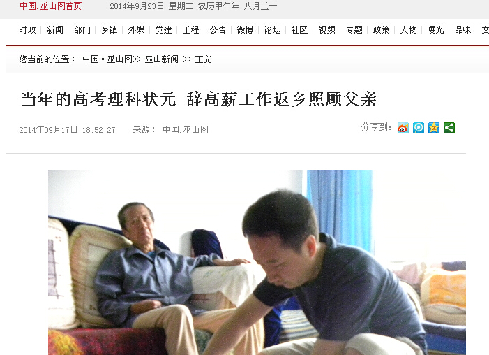 【中國巫網(wǎng)】北理工當(dāng)年高考狀元,辭高薪工作返鄉(xiāng)照顧父親