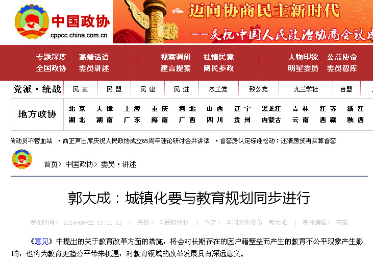 【中國政協】北理原黨委書記郭大成:城鎮化要與教育規劃同步進行