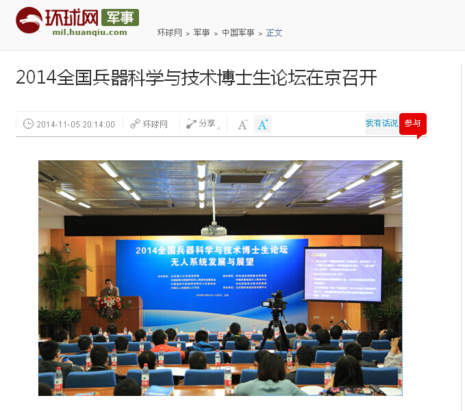 【環(huán)球網(wǎng)】2014全國兵器科學(xué)與技術(shù)博士生論壇在北理工召開