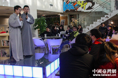 北理工學生表演相聲。(中國臺灣網 李岳 攝)