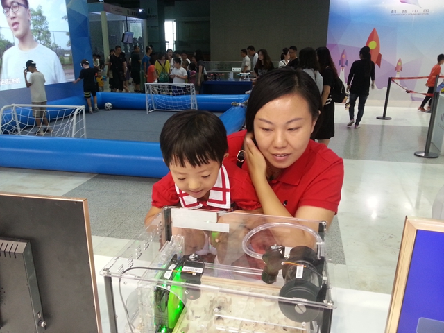 2016全國科普日北京主場活動近日在中國科技館舉行,由北京理工大學生命學院研究團隊研制的微重力蟻群群體行為觀測設備在展區亮相。微重力蟻群群體行為觀測設備是由京理工大學生命學院李曉瓊老師與秦奎偉老師指導、韓杰等6名研究生針對月球探測載荷創意設計的作品。