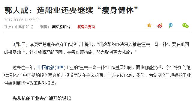 【中國船舶報】郭大成委員:造船業還要繼續“瘦身健體”