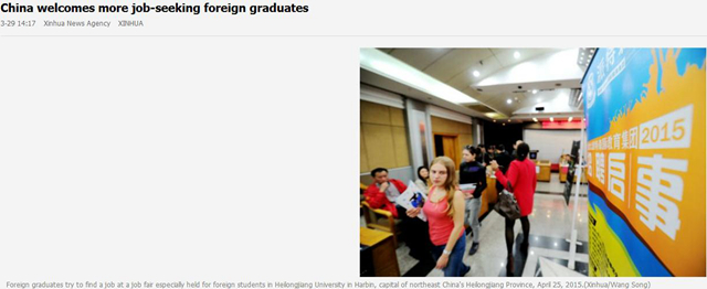 原文標題:China Welcomes More Job-seeking Foreign Graduates