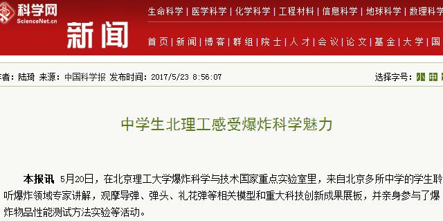 【中國科學報】中學生北理工感受爆炸科學魅力