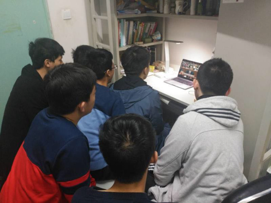 學生在宿舍內集體收看黨的十九大開幕會直播