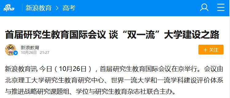 【新浪教育】首屆研究生教育國際會議 談“雙一流”大學建設之路