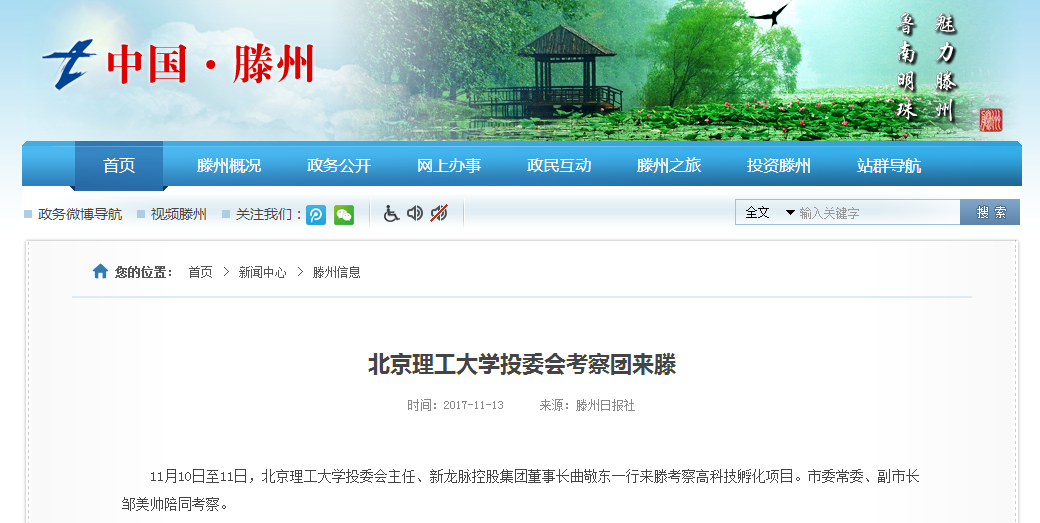 【滕州政府網(wǎng)】北京理工大學(xué)投委會(huì)前往滕州考察