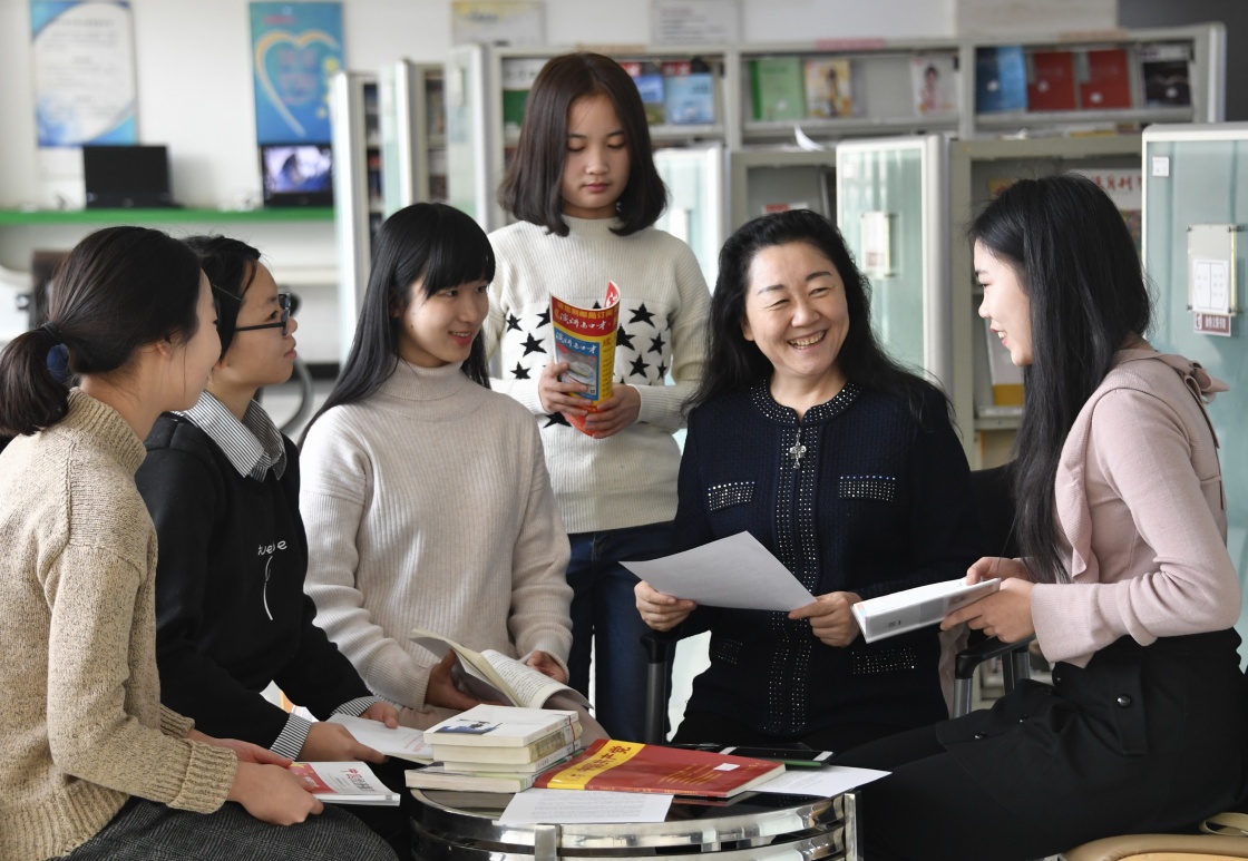 12月4日,北京理工大學馬克思主義學院院長李林英(右二)在輔導參加思想政治課演講的學生。