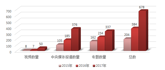 2017年,黨委宣傳部主動策劃學校重大活動外宣48次,共收集媒體首發報道678次,比去年同比增長約77%。新華社、《人民日報》《光明日報》《北京日報》《中國科學報》《科技日報》等媒體,通過平媒、網媒、新媒體以及手機客戶端發布我校報道600余次,中央電視臺、北京電視臺、中國教育電視臺等電視媒體報道50余次,積極打造對外宣傳的“全媒體”格局。