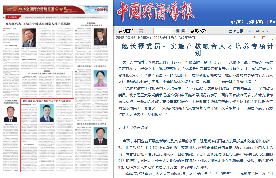 【兩會·中國經濟導報】趙長祿委員:實施產教融合人才培養專項計劃