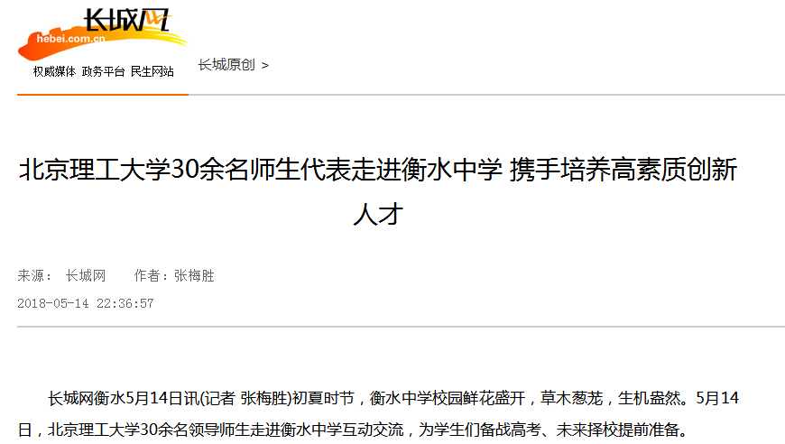 【長城網】北京理工大學30余名師生代表走進衡水中學 攜手培養高素質創新人才