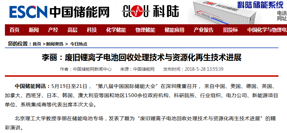 【中國儲能網】李麗:廢舊鋰離子電池回收處理技術與資源化再生技術進展