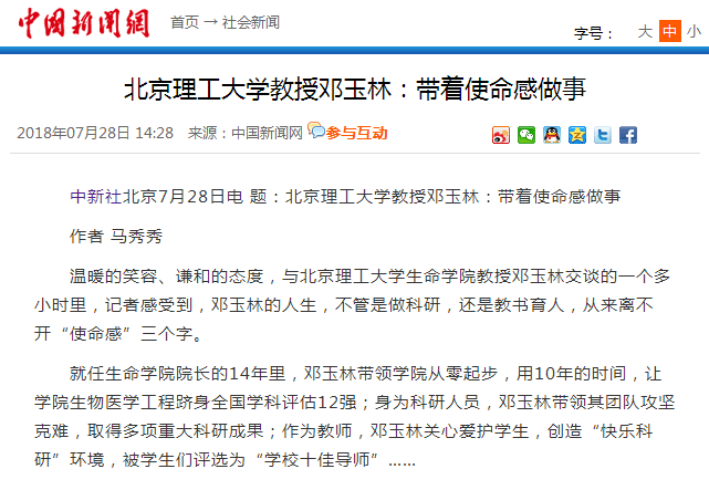 【中國新聞網(wǎng)】北京理工大學(xué)教授鄧玉林:帶著使命感做事