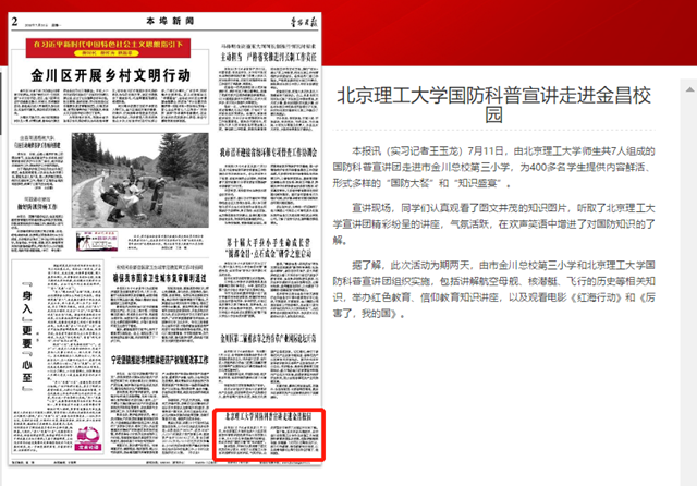 【金昌日報】北京理工大學國防科普宣講走進金昌校園