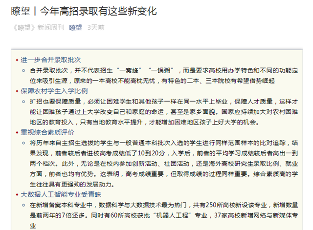 2018年高考錄取已經(jīng)結(jié)束,今年的高考招生錄取有哪些新情況新變化?《瞭望》新聞周刊就此進(jìn)行了梳理。