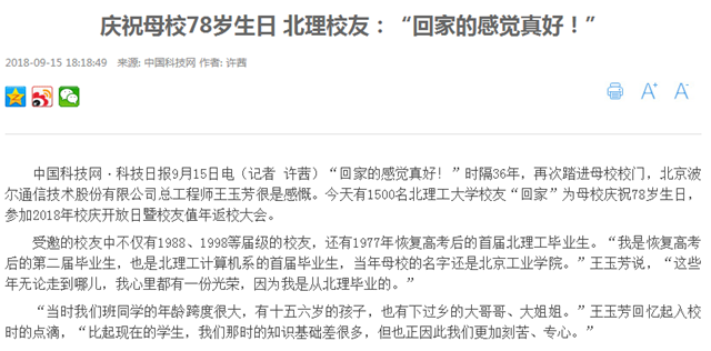 【中國科技網】慶祝母校78歲生日 北理工校友:“回家的感覺真好!”