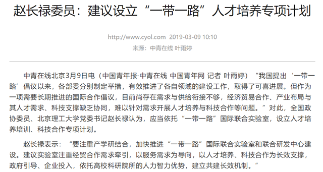 【兩會?中青在線】趙長祿委員:建議設立“一帶一路”人才培養專項計劃