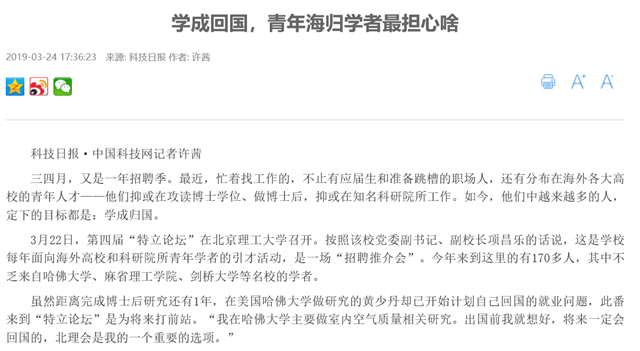 【中國科技網】學成回國,青年海歸學者最擔心啥