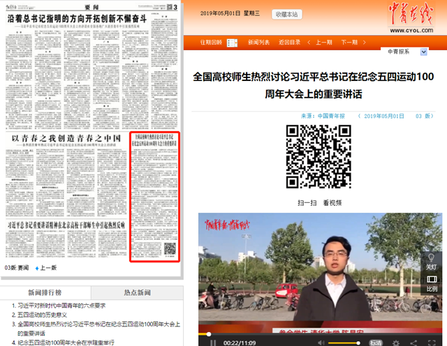 【中國青年報】全國高校師生熱烈討論習近平總書記在紀念五四運動100周年大會上的重要講話
