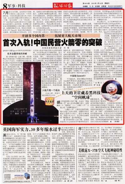 【環球時報】首次入軌!中國民營火箭零的突破