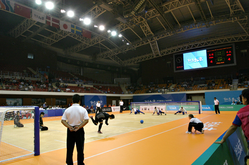 好運(yùn)北京2007年國際盲人門球邀請(qǐng)賽北理工體育館現(xiàn)場 (徐思軍 攝)