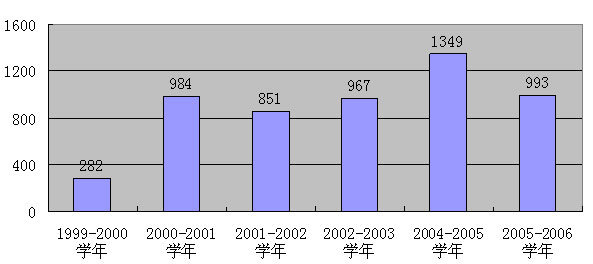 2005年,“綠色通道”共接待貧困學生482名,為418名學生辦理了緩繳入學費用手續,緩繳費用達248.66萬元,發放臨時借款近5萬元,發放飯卡267張、愛心禮包200個、照相卡297張、電話卡450張,補助金額近8萬元。