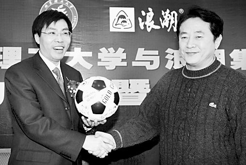 北京理工大學和浪潮集團簽署了合作共建高水平足球隊的協議,浪潮集團將贊助北京理工大學足球隊100萬元人民幣。據悉,這是國內企業首次贊助大學足球隊。圖為該隊金志揚主教練向浪潮集團負責人贈送全體隊員簽名的足球。