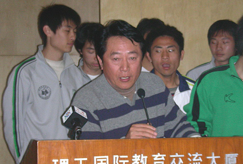 新浪體育訊 2007年2月15日下午,北京理工大學足球隊在學校召開了團拜會,學校校長楊賓以及球隊主帥金志揚介紹了球隊備戰中甲情況,并且通過團拜會向各界支持球隊的人士表達新年祝福。圖為金志揚做冬訓匯報。(智斌)