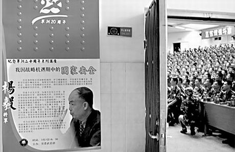 7月7日,國(guó)防大學(xué)戰(zhàn)略教研部副主任、戰(zhàn)略研究所所長(zhǎng)楊毅將軍在北京理工大學(xué)黨委武裝部舉辦的“將軍論壇”上就“我國(guó)戰(zhàn)略機(jī)遇期中的國(guó)家安全”作演講,深受大學(xué)生們歡迎。