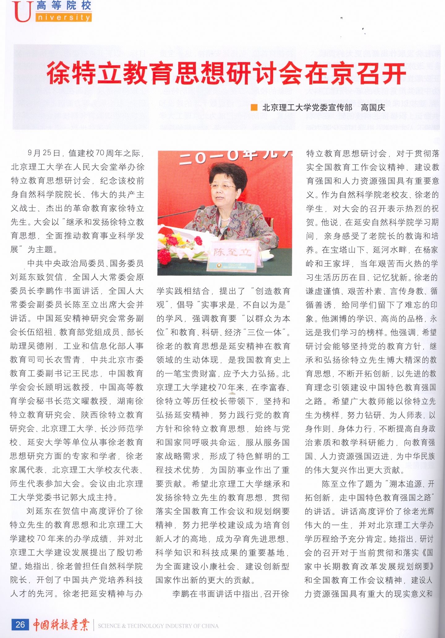 《中國科技產(chǎn)業(yè)》封面、封底并以12版篇幅報道北理工建校70周年慶祝活動