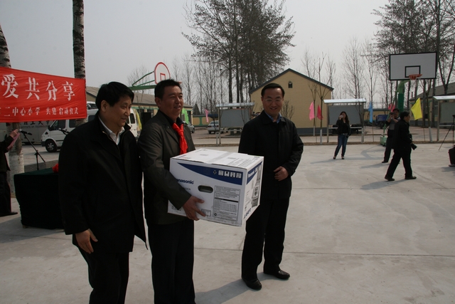 在共建活動啟動儀式上,老同志陳元禎老師、秦秀坤老師和李蘭東、韓寧夫代表北京理工大學和中關村軟件協會將“綠色新能源科技的”直升機電動航模、賽車電動模型、游艇電動模型以及600冊科普圖書贈送給了采育鎮第二中心小學的師生。激勵并希望本次活動能給孩子們留下深刻的印象,能夠常懷感恩之心,永葆進取之志,奮發成才,將來在倡導低碳環保、發展新能源科技的工作中作出自己的貢獻。”