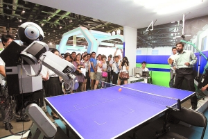 仿人機器人與真人進行乒乓球對打。