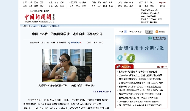 【中國新聞網】中國“90后”的美國留學夢:追求自由 不依賴父母
