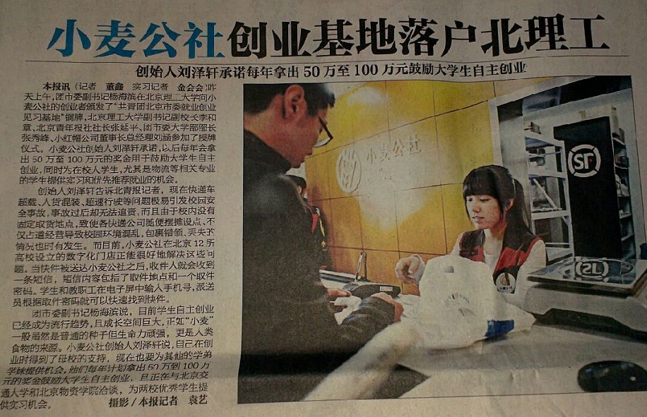 【北京青年報】小麥公社創業基地落戶北理工