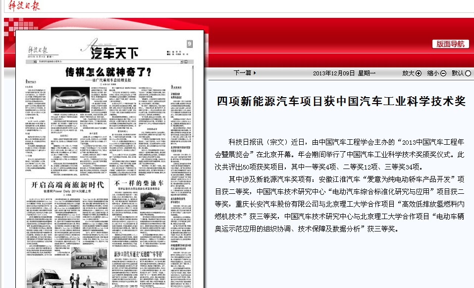 【科技日報】北理工新能源汽車項目獲中國汽車工業(yè)科學(xué)技術(shù)獎