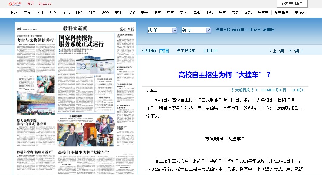 【光明日報】北理工趙顯利副校長談高校自主招生為何“大撞車”?