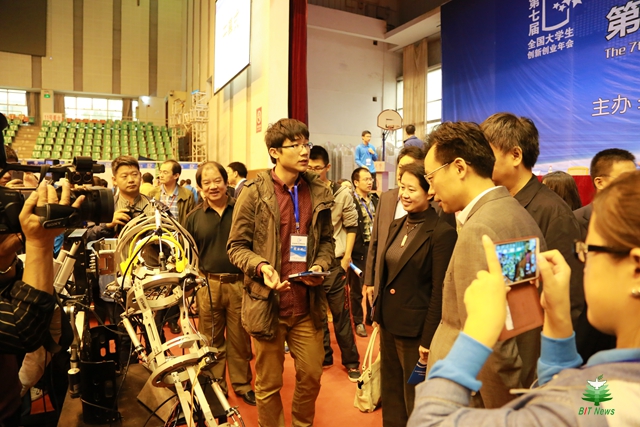 作為一位教學名師,羅慶生老師也不僅僅將培育人才的視角局限在本學院和本專業,為了使更多的北理工同學受益,他帶領青年教師在全校范圍內開設機械電子工程導論、仿生機械概論、創新綜合設計及實踐等課程。“學生相信我們,我們會毫無保留地為他們梳理創新思路,培養創新能力,完成創新作品。”羅慶生在課程中對學生的要求不高卻很實際:完成一個設計或項目、寫一篇報告或提出有深度的見解等等。“這能訓練學生思維,形成興趣攻關小組,選拔優秀的項目,培養攻關人才。”這些經過學習和鍛煉的學生,在日后的工作中往往都能獨當一面,發揮骨干與核心作用。