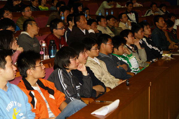 董路先生到場后,風趣幽默的開場白立刻調動了大家的興趣。當他說到“我習慣在別人懷疑的目光中證明我自己的想法!”時,大家感到了一種昂揚的精神,不禁大聲鼓起掌來。