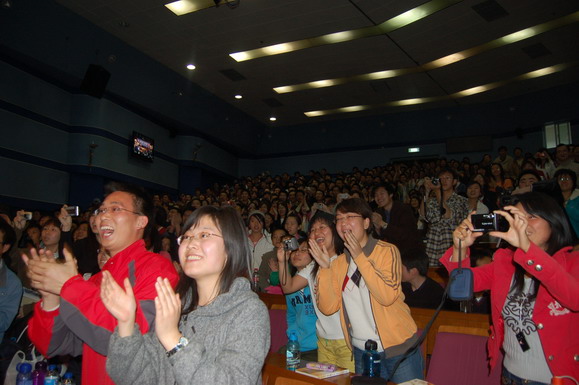 2007年4月16日晚7:00“聆聽智慧”名家論壇的第十七期在中心教學(xué)樓一層報(bào)告廳舉行。中國(guó)最經(jīng)典的電視劇《西游記》中孫悟空的扮演者章金萊老師應(yīng)邀來到我校,為我?guī)熒鲱}為《六小齡童品西游》的專題講座。
