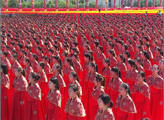 為了達(dá)到最佳表演效果,在去往廣場的路上,許多生平從未化過妝的男同學(xué)在女同學(xué)的幫助下迅速地面貌一新。