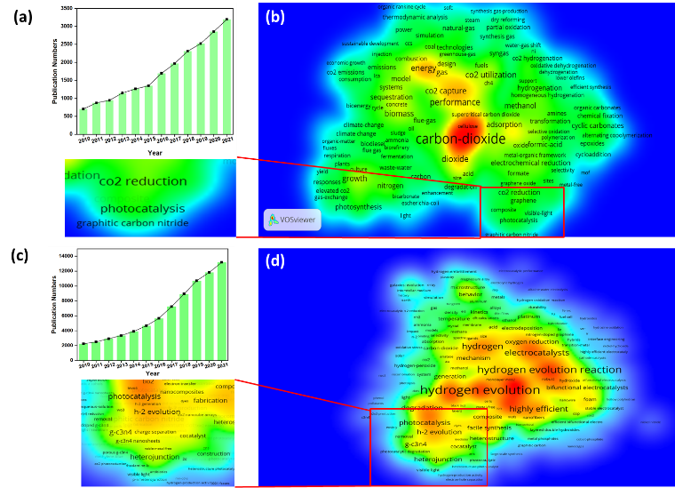 隨著工業化進程的加劇及人口的不斷增長,能源危機和環境污染成為全球性問題。探索清潔可再生能源的生產及CO2高值化利用對于緩解能源危機、改善環境狀況以及促進碳中和具有重要意義。受植物光合作用的啟發,以太陽光為驅動力,在半導體催化劑的作用下,實現光催化CO2轉化(CRR)及光解水制氫(HER)正在逐步成為具有巨大發展潛力的策略。如何合理地設計高效的半導體光催化劑已成為相關領域的一個研究熱點(圖1)。
