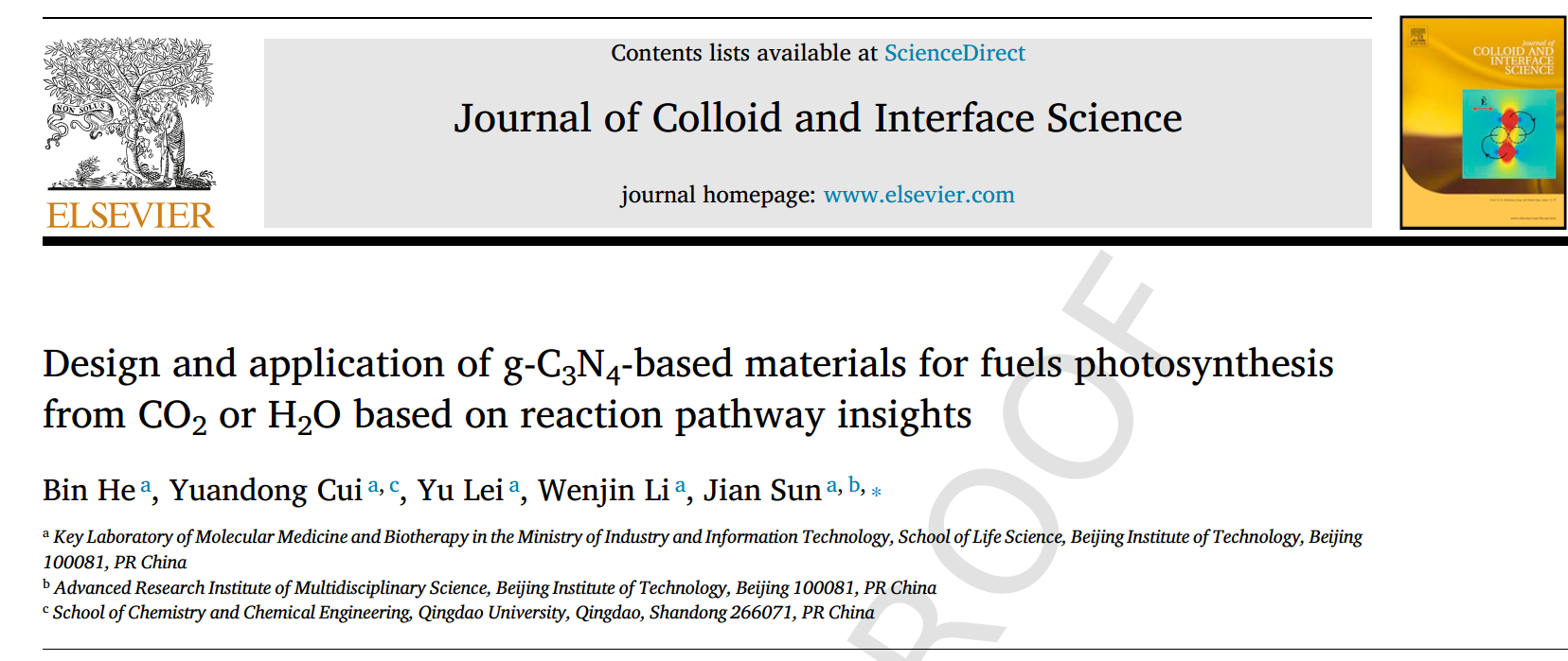 論文詳情:Bin He, Yuandong Cui, Yu Lei, Wenjin Li, Jian Sun, Design and Application of g-C3N4-based Materials for Fuels Photosynthesis from CO2 or H2O Based on Reaction Pathway Insights. DOI:10.1016/j.jcis.2022.09.114.
