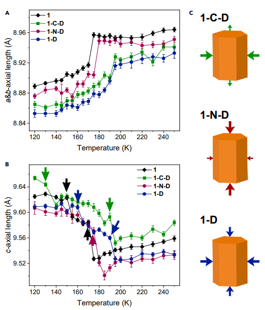 圖5 選擇性氘代對晶胞施加各向異性化學壓力。