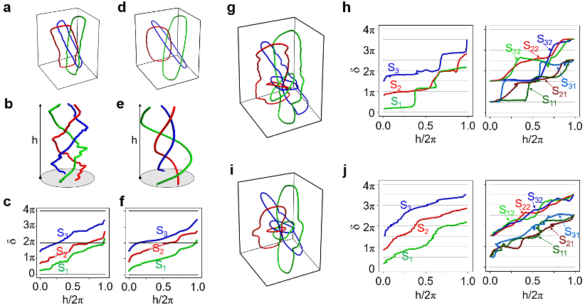 正如圖1a所示,這種新型的嵌套紐結所對應的辮子結構可以包含不同層級的多條零點線。而每一條零點線都蘊含著一個拓撲不變量------繞數