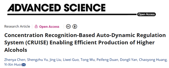 近日,北京理工大學(xué)霍毅欣教授團(tuán)隊(duì)在動(dòng)態(tài)調(diào)控高級醇持續(xù)高水平生產(chǎn)方面取得重要進(jìn)展。相關(guān)研究成果以“Concentration Recognition-Based Auto-Dynamic Regulation System (CRUISE) Enabling Efficient Production of Higher Alcohols”為題發(fā)表在頂級期刊《Advanced Science》(影響因子:15.1)。該工作以北京理工大學(xué)為第一通訊單位,研究員陳振婭和博士生于盛竹為共同第一作者,霍毅欣教授為通訊作者。