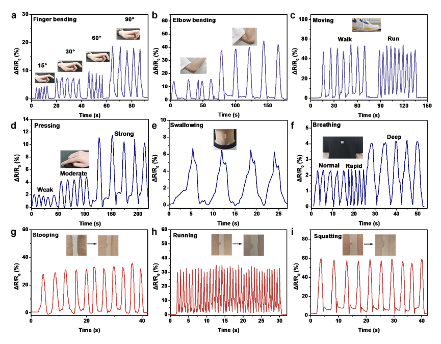 圖5. DAID-水凝膠應用于實時監測人體運動