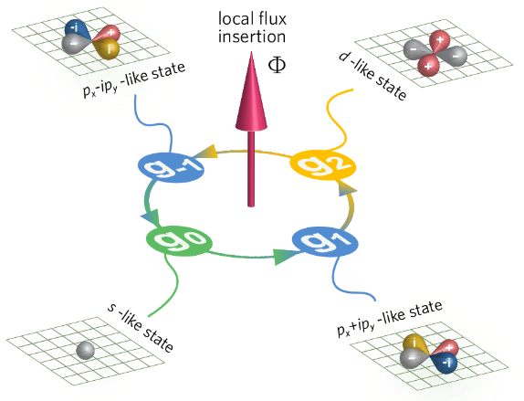 在磁通下,聲波的四重旋轉對稱性會發生循環演化,參考下圖: