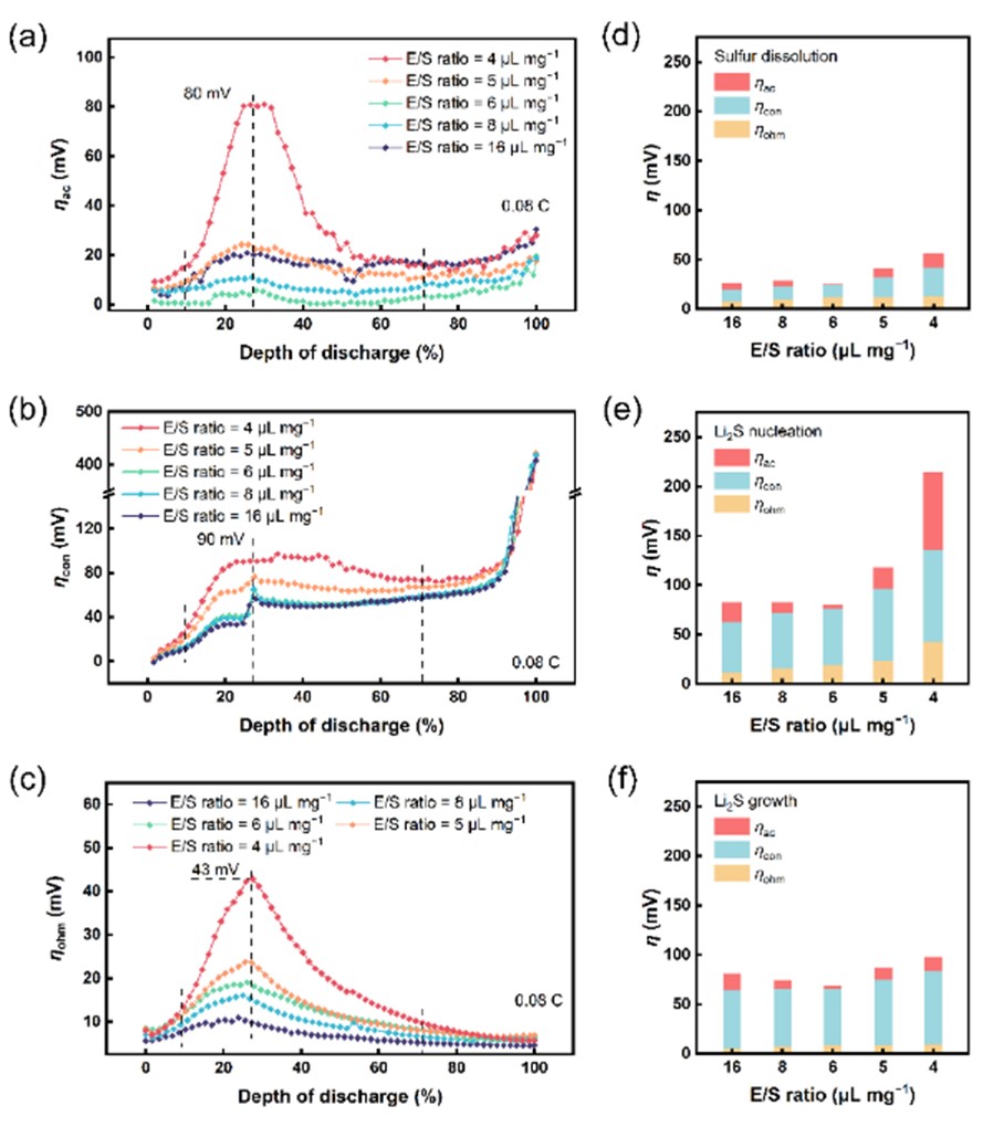 圖3. 不同E/S ratio下反應(yīng)動(dòng)力學(xué)極化解耦結(jié)果。