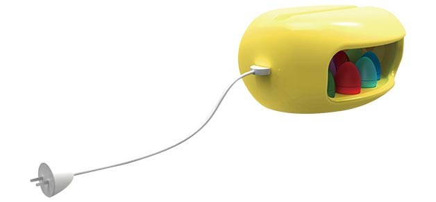 “Draw Pal”(繪畫伙伴)的設計靈感來源于作者對兒童的觀察。兒童們熱愛圖畫和色彩,喜歡通過畫畫表達自己的思想,與他人交流。該產品設計構造簡單明了,主要由畫板、底座和電子畫筆三個部分組成,整體設計為小鳥與它的盛蛋的窩。畫板抽象設計像為可愛的鳥兒形象,而電子畫筆則像是許多五彩繽紛的鳥蛋,15種不同顏色的畫筆能幫助孩子認識不同的色調。底座就像是一個中空的鳥窩,能夠方便孩子們在作畫時選取畫筆,美觀而實用。